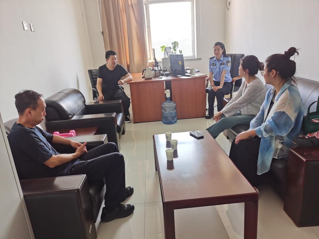 (严璨、代丹妮同刘雨蔚校友及公安局领导交流)
