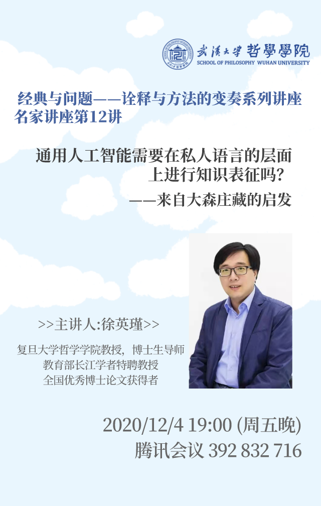 【12月4日】名家讲座第12讲:通用人工智能需要在私人语言的层面上进行知识表征吗?——来自大森庄藏的启发