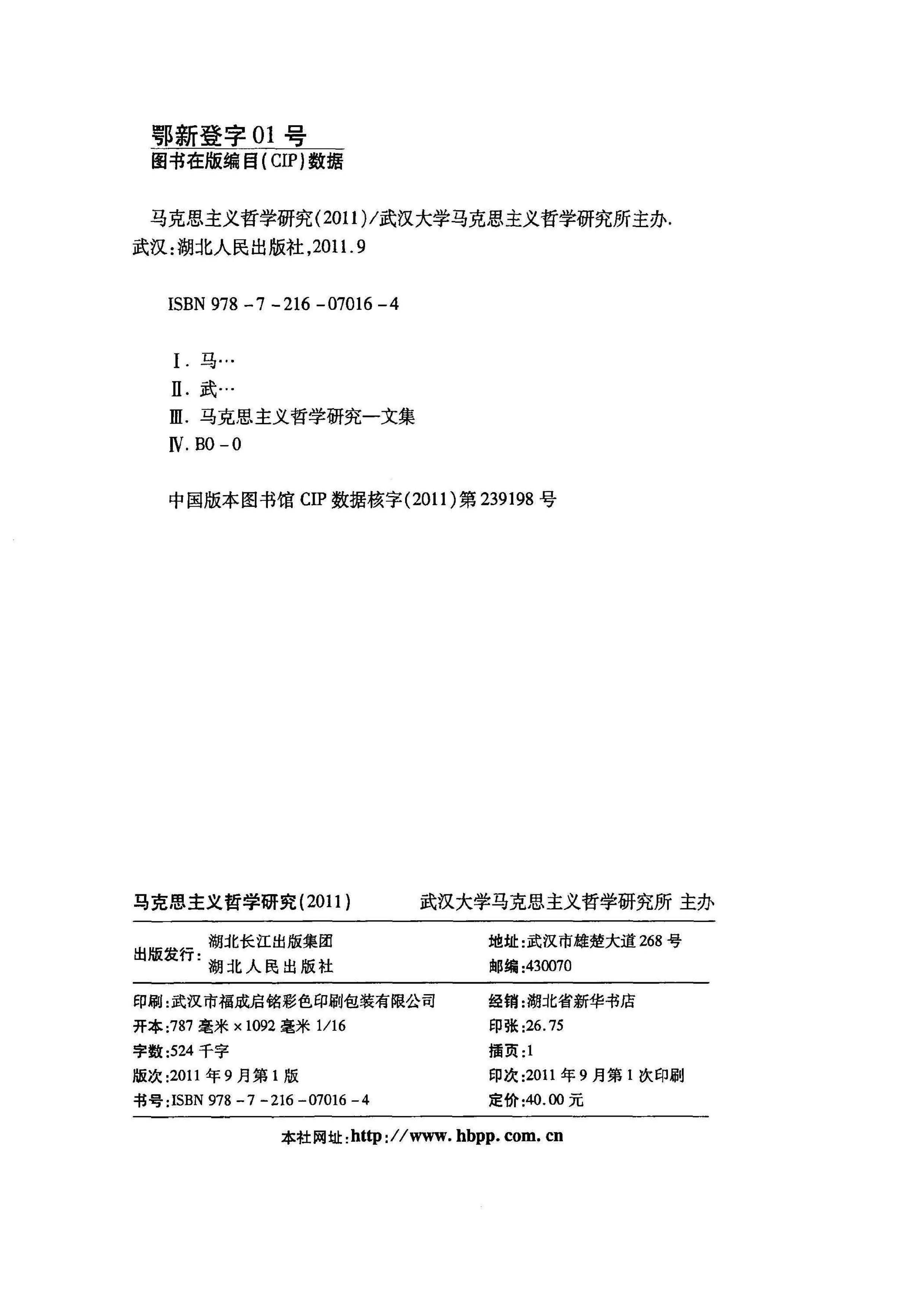 《马克思主义哲学研究》(2011年)