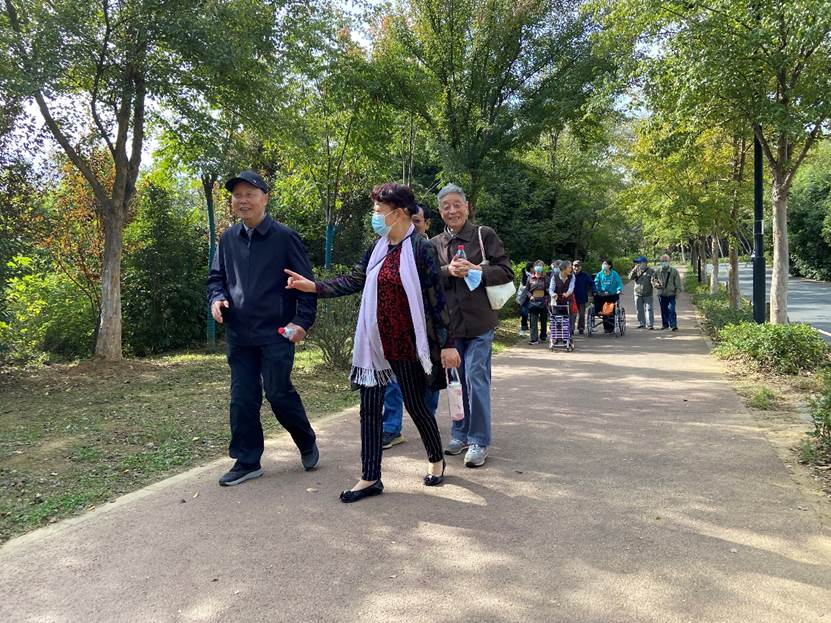 从校园出发大约半个小时,此次秋游的目的地——马鞍山便呈现在眼前。远离了都市的喧嚣,森林公园里有的只是小桥流水、虫鸟和鸣。身处在如此田园诗般的美景中,老同志们放松心情,尽情地在秋高气爽中徜徉。
