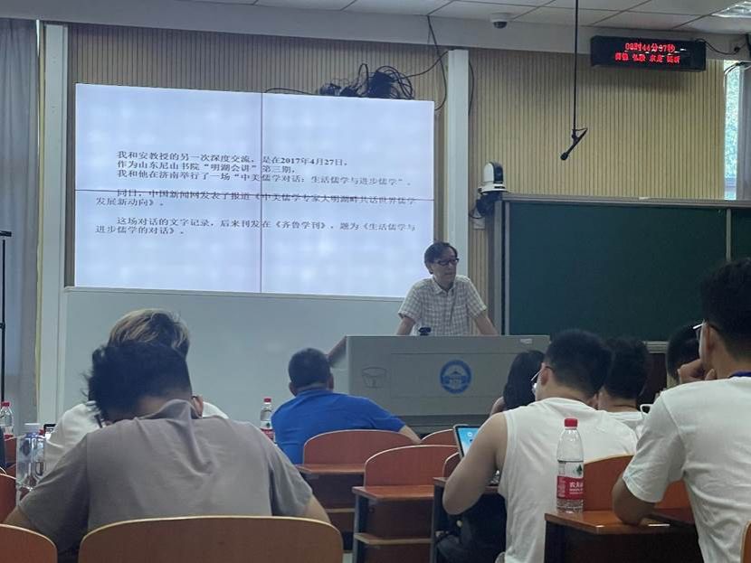 本网讯(通讯员 李忠泽)8月3日上午8:30,山东大学的黄玉顺教授做了题为“论儒学的‘进步’与‘自由’观念——‘生活儒学’与‘进步儒学’再比较”的主题报告。本场讲座由色情导航 副院长李勇教授主持。