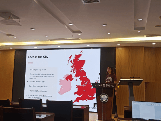 首先,李老师向同学们介绍了利兹大学基本情况:利兹大学是常春藤联盟罗素大学集团创始成员,英国著名的六所“红砖大学”之一,在2023年QS世界大学排名中居世界第86名。地理位置上,利兹大学位于城区,距离市区近,交通方便。