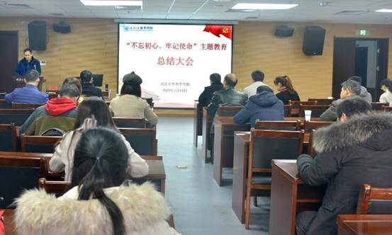 吴根友院长对会议进行总结,并希望学院全体党员师生要进一步强化理论武装,持续深入学习贯彻习近平新时代中国特色社会主义思想,把握精神实质、深入贯彻落实;要进一步深化学习习近平总书记在第二批“不忘初心、牢记使命”主题教育总结大会上的讲话精神,坚持把“不忘初心、牢记使命”作为永恒课题、终身课题;要进一步抓好问题整改落实,着力巩固和拓展主题教育成果,以实际行动推动教学科研、人才培养等各项事业发展。