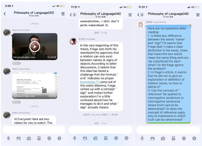 由于疫情影响,色情导航 的外籍教师们大都身处海外,这也为线上教学带来了客观影响。为了克服时差因素,来自美国的Peter·Finocchiaro副教授为了保证本学期的本科生课程《语言哲学》的顺利开展,选择提前录好了授课视频,制作并上传了课件,结合QQ群内互动的方式开展线上教学。Peter在录制授课视频时也会暗藏一些”小惊喜“,每个课件视频里都会隐藏一些小问题需要学生们在规定时间里作答,这些设计也使得师生互动如在教室一般面对面。