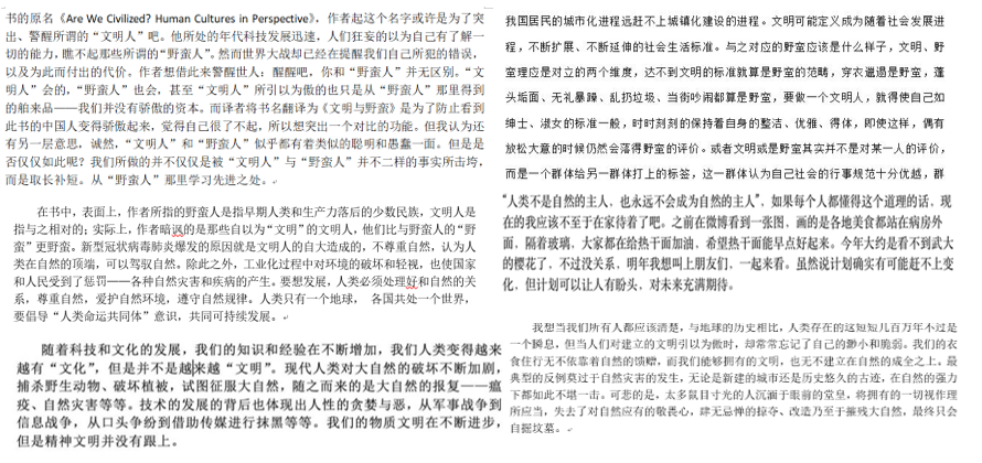 在课堂交流中,大家对文明和野蛮的定义进行了思考和讨论。联想到此次的新型肺炎,同学们也认识到我们人类应当认真且谨慎地处理与自然的关系,“人类不是自然的主人,也永远不会成为自然的主人”,文明与野蛮的关系也不是完全对立的。