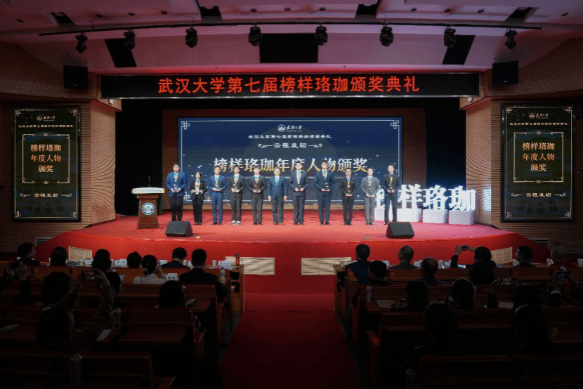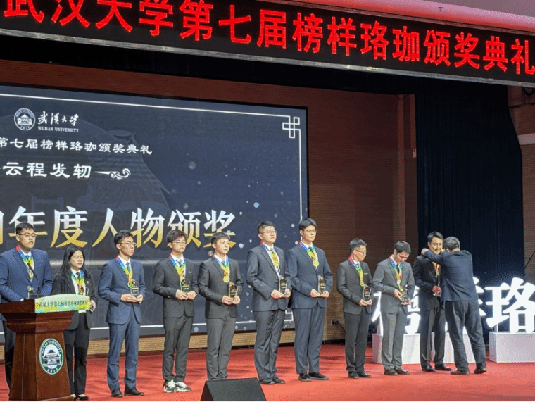 校长张平文院士为榜样珞珈年度人物颁奖(右一为黄炎硕)