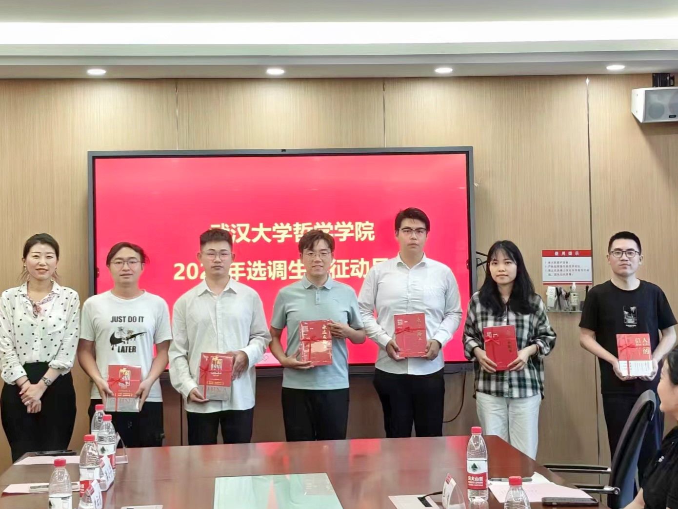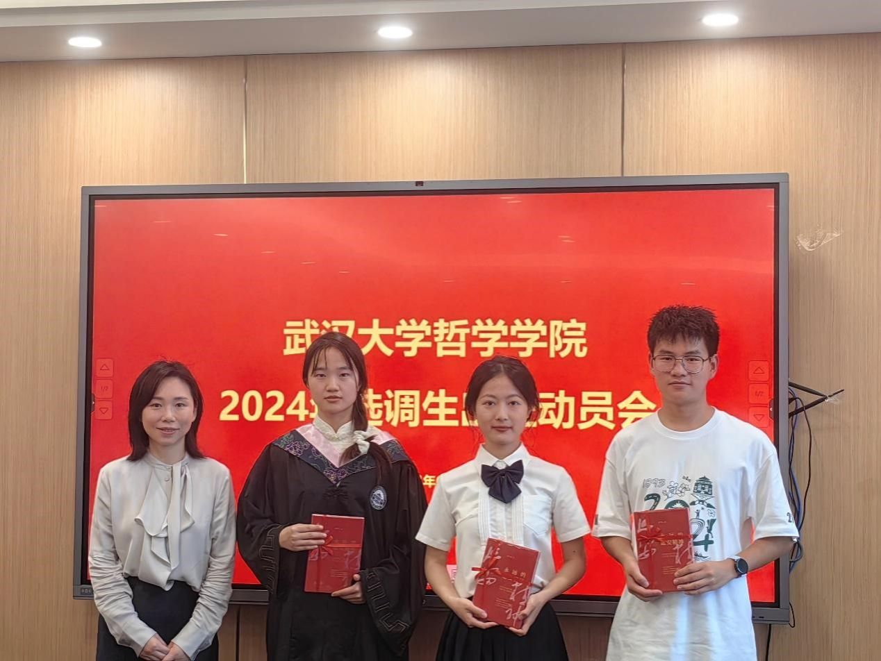 严璨强调选调生要学会处理好群众关系,牢固树立马克思主义的群众观,急群众所急,想群众所想;同时要舍得做小事,坚持求真务实的工作作风,以实实在在的行动获得群众的认可与支持。刘慧提醒选调生们要志存高远,以广阔的胸怀走基层路、解群众难,展现武大哲学人的使命情怀和责任担当。学院永远是大家坚强的后盾,希望大家毕业后加强与学院的沟通、联动。严璨、刘慧为2024届选调生赠送了《中国国情读本(2024版)》、《永远的延安精神》、《永远在路上:把党的伟大自我革命进行到底》、《人民的信仰》等书籍,勉励同学们要不断“再学习”,从书本中汲取智慧和营养,提升“七种能力”,练好内功、增强本领。