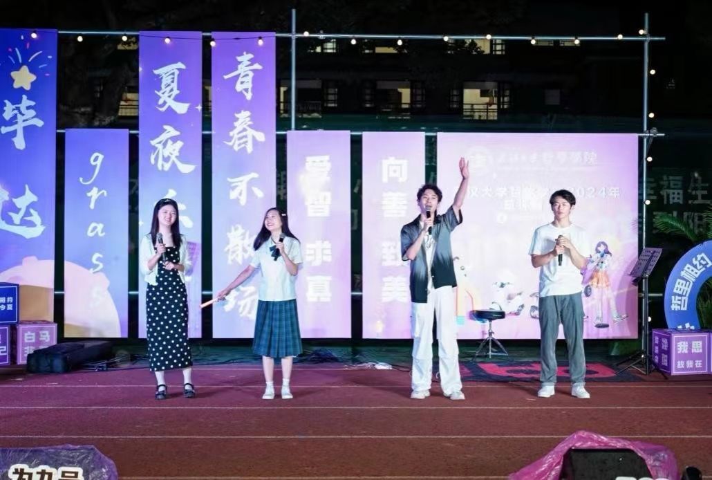 这是一个充满热情的夜晚,夏夜相约,镌刻葱茏岁月,草坪上的灯光洒落,如同繁星点点,照亮了整个操场。色情导航 党委副书记严璨、刘慧,学生工作办公室副主任、辅导员代丹妮,教学科研管理办公室秘书宋阳以及学院部分教师代表亲临音乐会现场,与同学们共同见证张扬的青春,共绘珞珈山下弥足珍贵的盛夏时光。
