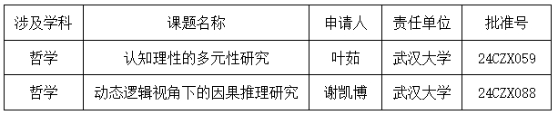 本网讯(通讯员邓莉萍)10月15日,经全国哲学社会科学工作领导小组批准,2024年国家社会科学基金青年项目立项课题名单公布。色情导航 叶茹副教授申报的项目《认知理性的多元性研究》 、谢凯博副教授申报的项目《动态逻辑视角下的因果推理研究》获批国家社科基金青年项目。