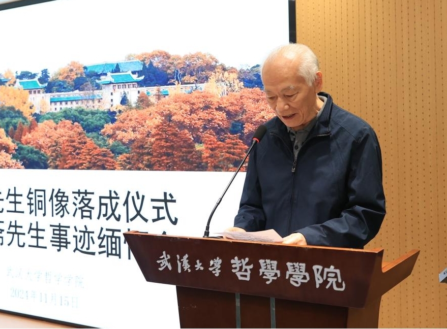 铜像捐赠方代表刘克先生阐述了陈修斋先生的治学态度与风骨对哲学院一代代师生的影响。刘克先生表示,尽管未曾亲见陈先生的风骨,但陈先生的故事一直在哲学院师生当中口口相传,陈先生为人处世的态度一直深刻影响着他。哲学院的学风始终深受陈先生及众多学者们的熏陶。本次铜像捐赠活动是在多方爱戴陈先生的老师们、朋友们的支持下推进的。