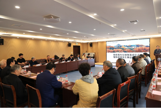 铜像揭幕仪式之后,全体人员继续参加缅怀会议,追思陈修斋先生生平事迹。陈修斋先生的学生们分别回忆并分享了陈先生为人治学的许多珍贵往事,共同表达了对恩师的感恩与怀念。