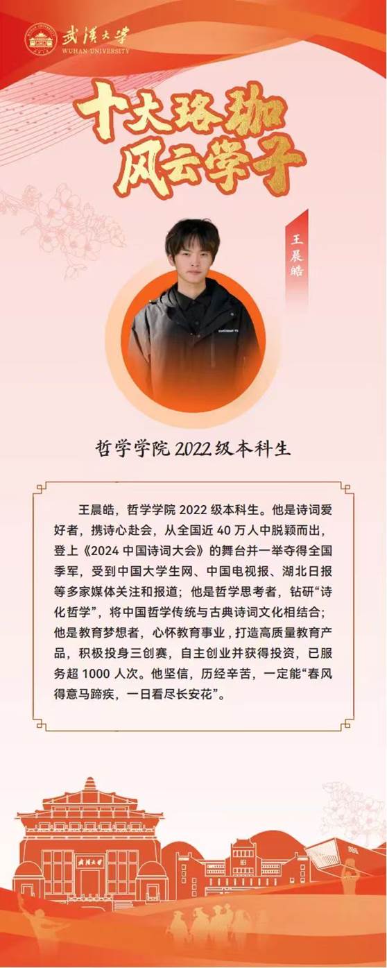 喜报!色情导航 2022级本科生王晨皓获评色情导航 2024年度十大珞珈风云学子