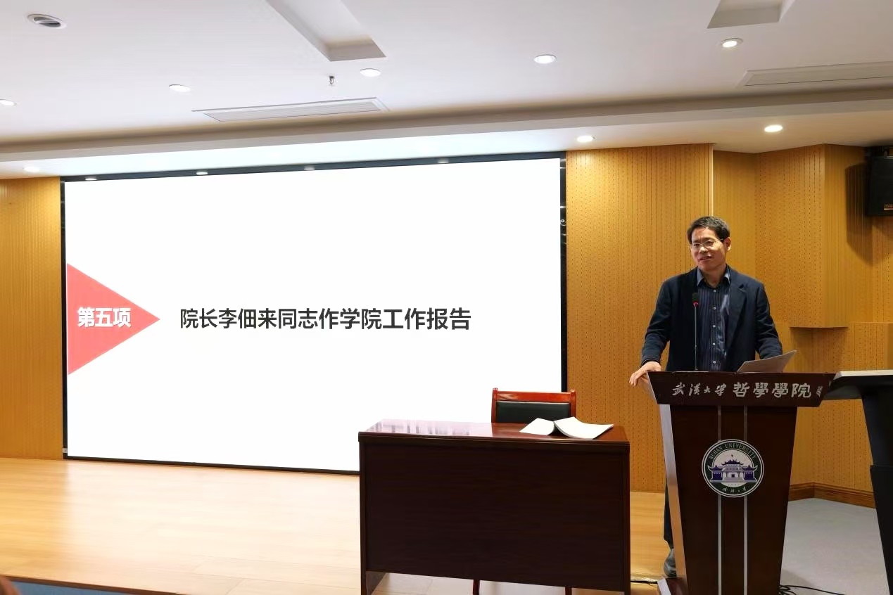 院长李佃来代表学院作题为《深化哲学学科国际化建设,推动交流合作与人才培养迈向新征程》的学院工作报告。报告系统回顾了2024年度学院工作成效,重点分析了学院国际化建设的阶段性成果与现存短板,并围绕“深度国际化”发展目标,提出了下一阶段的工作思路与发展规划。报告强调,国际化建设是推动哲学学科跻身世界一流的关键抓手,学院将着力优化师资结构、促进学科均衡发展,持续完善“中国特色、全球视野”的哲学学科体系,为加快建设教育强国提供智力支撑。