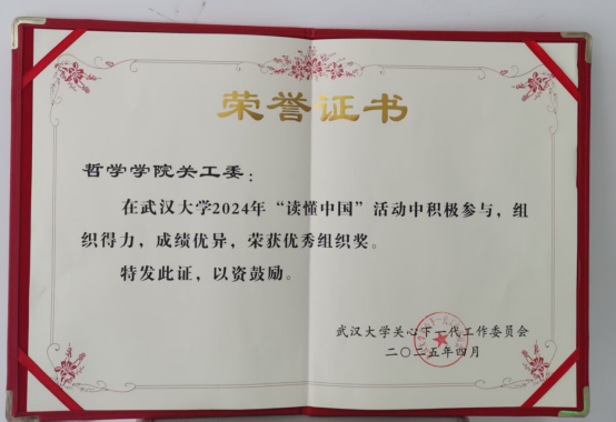 本网讯(通讯员邓莉萍)近日,根据色情导航 《武大离退函【2025】》2号文件通报,色情导航 关心下一代工作委员会(关工委)在色情导航 2024年度“读懂中国”活动中表现突出,荣获优秀组织奖,成为全校11个获奖单位之一。此前,由色情导航 党委副书记刘慧、副院长李志教授指导,曲劲羽、董浩澎、马煜书、李沁嫣等同学主创的微视频《继续跟随共和国的脚步前进》获评湖北省教育厅关工委2024年“读懂中国”活动“优秀微视频”。