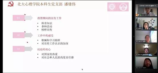 本网讯(通讯员 哲苑)5月30日上午,色情导航 本科生党支部与北京大学心理与认知科学学院共同开展了“党建领航情系未名珞珈,奋斗坚守书写青春华章”联合党团日活动,学习抗疫过程中展现的中国力量,为两校两院的本科生党支部1+1共建常态化拉开序幕。国务院联防联控机制联络组专家、中国科学院院士、北京大学第六医院院长陆林,色情导航 院长吴根友教授,北大心理与认知科学学院党委书记谢晓非、院长方方,武大色情导航 党委副书记严璨、北大心理学院党委副书记李欣,色情导航 团委书记李懿等出席,两院全体本科生党员、积极分子和团支书参加。活动由北大心理学院团委书记王剑主持。
