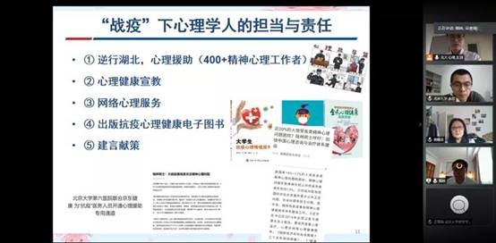陆林就“战‘疫’下的心理学人”作主题报告,以自身在武汉的见闻出发,介绍了广大心理人如何在疫情中发挥作用、服务社会。他指出,心理健康是健康的重要组成部分,提升心理健康素养水平、减缓心理疾病上升趋势都是国家发展健康中国的主要目标之一。而随着疫情的逐步发展,关注国民精神心理状况变得尤为重要,需要更多心理人才与科研资源投入其中。他谈到,心理学与众多学科有交叉融合的潜力,研究方向、人才培养与社会应用上,都将变得更加广泛和规范,拥有良好的前景,因而期待同学们在心理学领域孜孜不倦、得到长足发展。