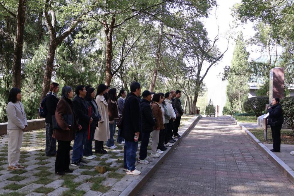 紧接着,队伍前往烈士墓地瞻仰。这里安葬着红二十五军军长蔡昇熙、政委吴焕先、中共鄂豫皖省委书记沈泽民三位革命先烈。在工作人员以《为有牺牲多壮志》为题的现场深情讲述中,师生们重温了三位将军那段气壮山河的英雄史诗。他们在风华正茂之年以身许国,用滚烫的热血浇灌革命理想,将短暂的生命定格成了永恒的丰碑。全体师生在墓前肃立默哀,于静默中感受那份跨越时空、荡气回肠的信仰力量。