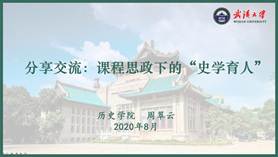 历史学院学工办主任、团委书记周翠云以“‘史学育人’课程思政建设”为题提出了历史学院在开展课程思政建设的过程中的一些思考。首先,她提到了学习历史的重要性。其次她介绍了历史学院在进行课程思政建设过程中的几个重要的板块。一是在专业课教学中依托中国史教研室发掘不同历史时期爱国主义的具体内涵,厚植大学生的爱国主义情怀;依托世界史教研室,使得学生把准时空坐标,深刻体会感悟中国特色社会主义制度优势;依托社会史、医疗史等领域,培养学生胸怀天下的家国情怀和坚韧不拔的奋斗精神。二是在实践课教学中依托口述史,使得学生代入“历史倾听者”的角色,加强其收集史料、辨析史料、理解史实的能力。三是在文化课教学中依托文化史等课程,增强学生认识历史、参与历史、反思历史的能力,在文化熏染中引导学生爱党爱国,坚定“四个自信”。