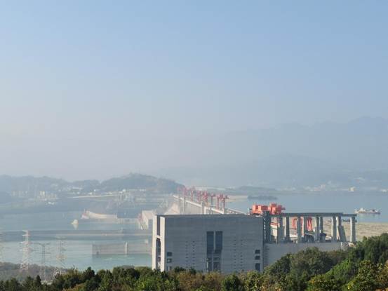 而在五级船闸观景台上,同学们近距离地观看了五级船闸。在讲解员的介绍下,则更是深入地了解了长江三峡作为世界上最大的内流河船闸,它的运作原理以及来往船只的过闸方式。