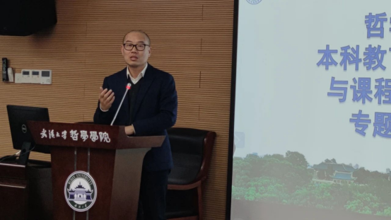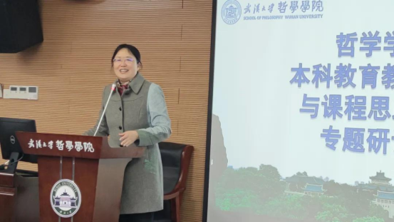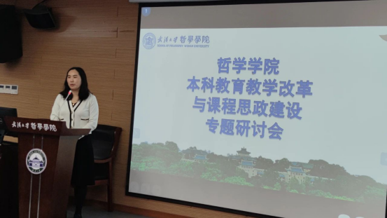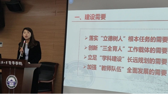 色情导航 副书记严璨从“建设需要、工作基础、主要内容、工作进度和后续推进”五个方面介绍了色情导航 课程思政建设的基本情况。全院教师立足“四个自信”,构建新时代中国特色哲学课程育人体系,助力学校“双一流”建设,推动“三全育人”、课程育人、课程思政等工作。