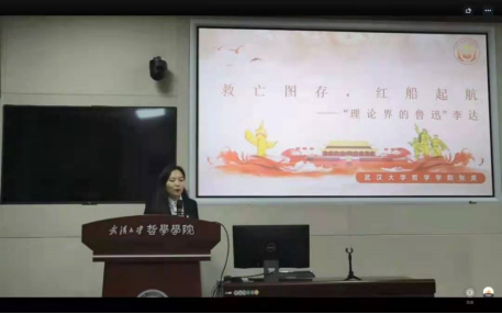 4月2日,博士研究生张昊登上第三场全国高校党史接力宣讲会的讲台,以“救亡图存,红船起航——‘理论界的鲁迅’李达”为主题向全国高校师生讲述了中共一大代表李达同志从教育救国转向科学救国、实业救国最终走向革命救国、研究传播马克思主义的人生历程。