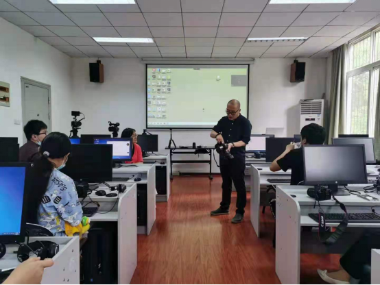 最后,陈院长通过指导师生在电脑软件上实际操作的方式为师生们讲授了如何进行“剪辑”基本知识。
