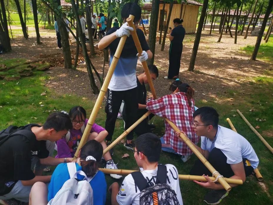 “拒兵先声霹雳车,犹隔千秋梦大秦”最后一站,同学们在领队的带领下,来到下午搭建罗马炮架的团队素质拓展营地。在搭建过程中,讲解员一边为同学们教授不同绳结的打法和“罗马炮架”的搭建结构,一边陈述了5月30日是拜占庭帝国被攻破君士坦丁堡568周年的纪念日的历史故事。活动中,同学们以小组为单位,团队分工,各司其职,身体力行地组装炮架。组装完成后,各小组又以水气球进行比赛,测试罗马炮架的威力和效果。一只只注满水的气球被发射,在天空划出一道靓丽的抛物线,落地溅起朵朵水花。“罗马炮架”的原材料不过几根竹子和一些绳索,却让同学们感受了集体和团队分工合作带来的智慧和力量,体会到了个人价值在集体中的实现。