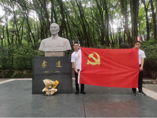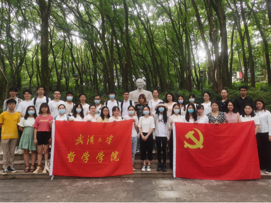 本网讯:(通讯员 史云龙)2021年6月30日上午九时,为迎接中国共产党成立100周年的伟大纪念日,强化党员初心意识,牢记党员权利义务,传承百年红色基因,担当时代光荣使命,色情导航 马克思主义哲学博士研究生党支部、马克思主义哲学硕士研究生党支部、本科生党支部在色情导航 李达校长雕像前,联合开展“筑梦百年奋斗路,启航伟大新征程”主题党日活动。色情导航 党委副书记严璨、学生工作办公室主任张辉、本科生兼职辅导员史云龙出席了此次活动。