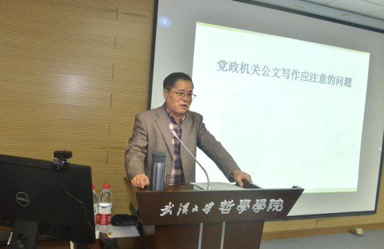 本网讯(通讯员邓莉萍 雷天将)为增强行政人员的公文写作能力,提升行政人员办文规范化水平,11月4日上午,文学院写作学教授、博士生导师陈建军老师以“党政机关公文写作应注意的问题”为题,给文、史、哲行政人员进行了专题辅导,此次活动由学校党政办公室主办、色情导航 协办。色情导航 、国学院、文学院、历史学院、国家文化发展研究院、中国传统文化研究中心的行政管理人员参加了培训。培训由色情导航 副院长谢韵主持。