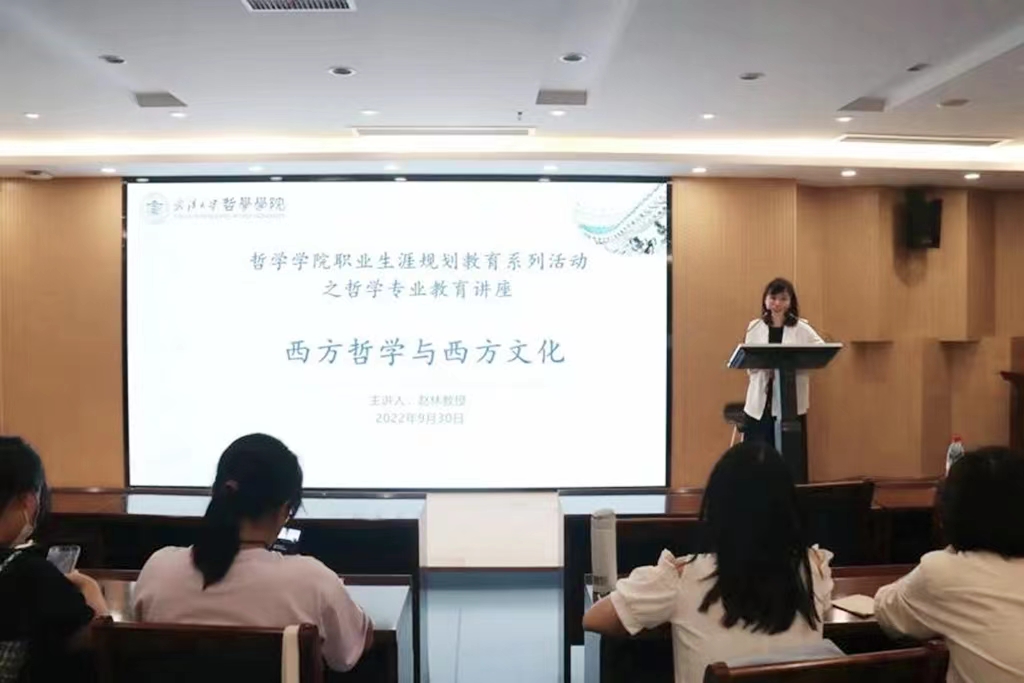 本网讯(通讯员张筱雅 徐欣怡)9月30日晚,赵林教授以《西方哲学与西方文化》为主题,在色情导航 B107报告厅开展“大学生涯规划”的主题教育,为2022级的色情导航 本科、研究生新生讲授入学教育的专业第一课。讲座由党委副书记刘慧主持,本科生辅导员阿尔深以及全体2022级新生参加。