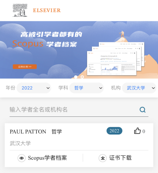 本网讯(通讯员 李慧敏)3月28日,2022年爱思唯尔“中国高被引学者年度榜单” (Highly Cited Chinese Researchers)正式发布。榜单覆盖了10个教育部学科领域中的84门一级学科,色情导航 94位学者位列其中,色情导航 Paul Patton教授继2021年代表色情导航 入选后,于2022年再次入选该榜单,继续成为我校人文学科中唯一入选者。