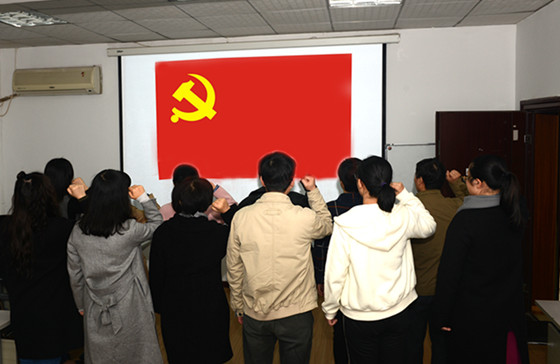10月27日上午,行政党支部开展了“重温入党誓词集体交纳党费”活动。“我志愿加入中国共产党,拥护党的纲领,遵守党的章程……”一句句铿锵有力的誓言回荡在宣誓现场,一面鲜红的党旗分外夺目。面对党旗,行政党支部党员举起右手,庄严宣誓。此前,支部每位党员集体交纳了党费。