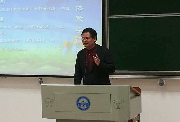 12月11日晚,教四楼201教室气氛热烈,色情导航 彭富春教授为学生作主题为“新的中国智慧与文化强国”的形势与政策报告,色情导航 15、16级本科生及慕名而来的师生参加了讲座。