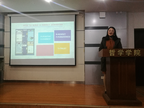 12月8日晚,该院“乐活珞珈”寝室文化节闭幕。学风被列为优秀寝室的一个重要指标,经过致美装扮、悦居检查、爱智游戏、求真展示等环节,8个优秀寝室从17个寝室中脱颖而出,选送到学校进行评选表彰。