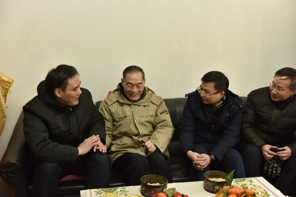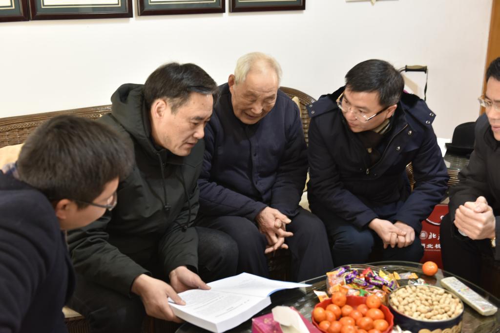 2月5日上午,院党委书记龙滔、院长吴根友、副书记徐萍、刘义胜、副院长李佃来、黄超、谢韵等学院领导班子成员登门看望慰问了黄德华、朱传啓、段德智、刘纲纪和陶德麟五位老教授。院长吴根友专门创作《贺新春》诗歌代表学院师生为老教授们送去新春的祝福和节日的问候。