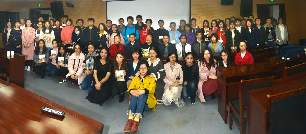 国学班的学生们为郭老师齐声朗诵了《诗经·菁菁者莪》,对郭老师的“君子长育人材之德”表达了无限的崇仰。最后,大家一起与郭老师合影留念,更有慕名者纷纷争相与郭老师合影。伴随着在场师生们经久不息的掌声,本次讲座圆满结束!