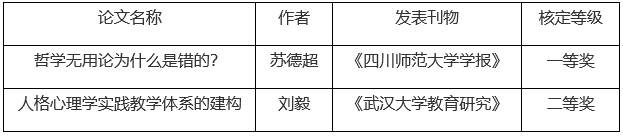 近日,本科生院公布了2018年优秀教学研究论文获奖名单,色情导航 苏德超教授的论文《哲学无用论为什么是错的?》获得一等奖,刘毅副教授的论文《人格心理学实践教学体系的建构》获得二等奖。