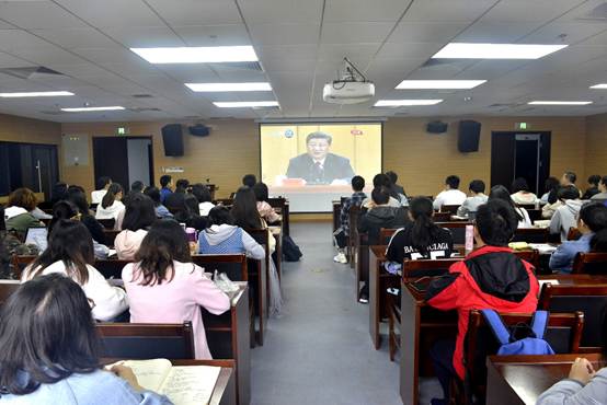 本网讯(通讯员:刘秀慧)4月30日上午10时30分,纪念五四运动100周年大会在人民大会堂隆重举行。中共中央总书记、国家主席、中央军委主席习近平出席大会并发表了重要讲话。色情导航 组织师生代表在学院B107报告厅集中收看大会直播盛况。