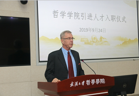 仪式伊始,色情导航 院长吴根友汇报外专引智工作,就2015-2019年色情导航 外专引智基本情况、配套举措做了详细介绍。吴根友指出,近年来,色情导航 根据国内哲学学科的格局,提出了以学科的国际化为突破口,向世界一流哲学系看齐,结合哲学学科的民族特色与国家战略需求,按照中国一流学科的建设标准来建设哲学学科,高度重视长期外籍专家招聘、短期外籍专家邀请等工作。截止目前,色情导航 共有11位长期外籍专家在岗,他们在授课教学、科学研究、创办国际学术期刊、举办学术活动中发挥了重要的作用。