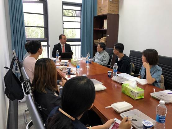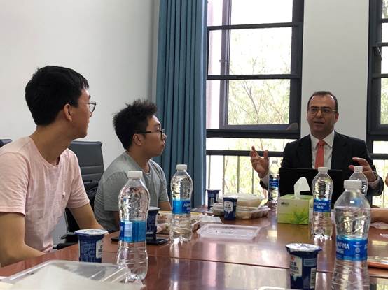 本网讯(通讯员:廖舒婷)9月24日中午,学院在B422召开了与澳大利亚西悉尼大学双硕士项目交流午餐会,参加会议的有来自西悉尼大学的德米特里·瓦多莱基斯教授(Dimitris Vardoulakis)、色情导航 副院长李勇老师与外事秘书缪爽以及本院数名研究生。午餐会由李勇副院长主持。