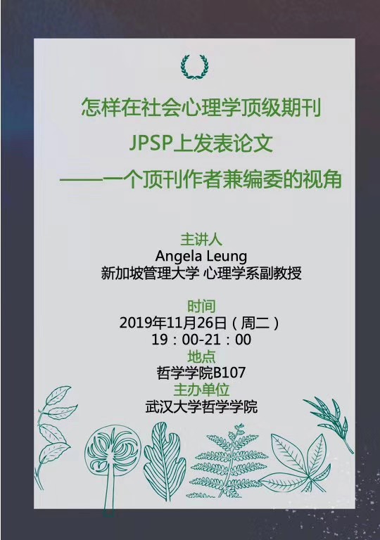 【11月26日】怎样在社会心理学顶级期刊 JPSP上发表论文 ——一个顶刊作者兼编委的视角