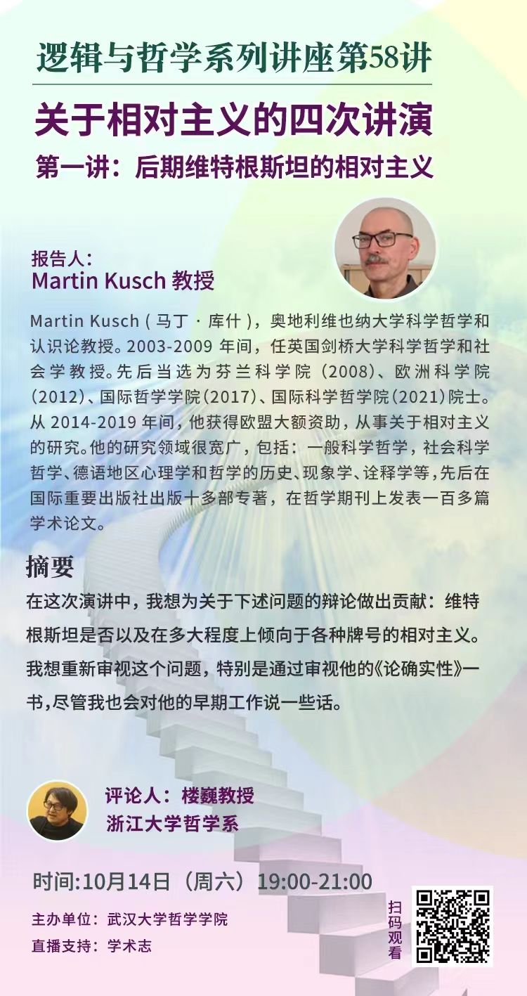 【10月14日】关于相对主义的四次讲演 ▏第一讲:后期维特根斯坦的相对主义——逻辑与哲学系列讲座第58讲