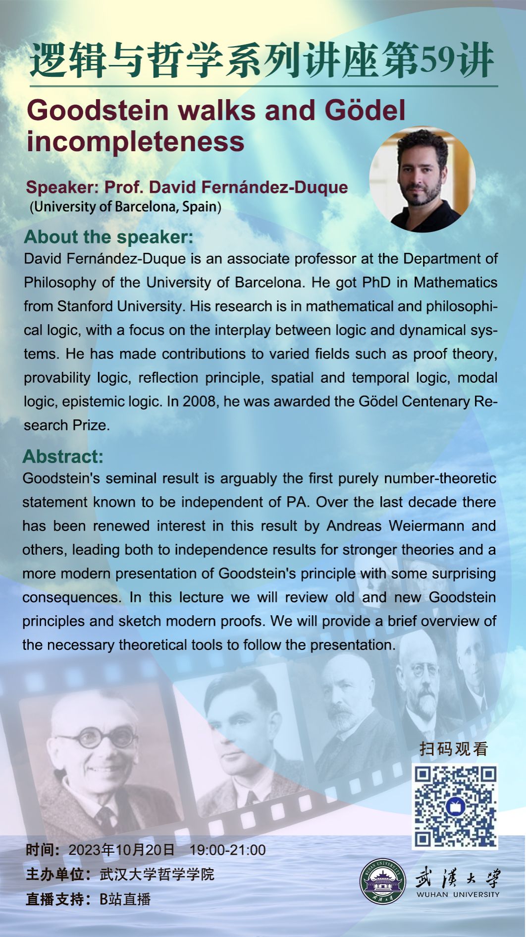 【10月20日】Goodstein walks and Gödel incompleteness——逻辑与哲学系列讲座第59讲