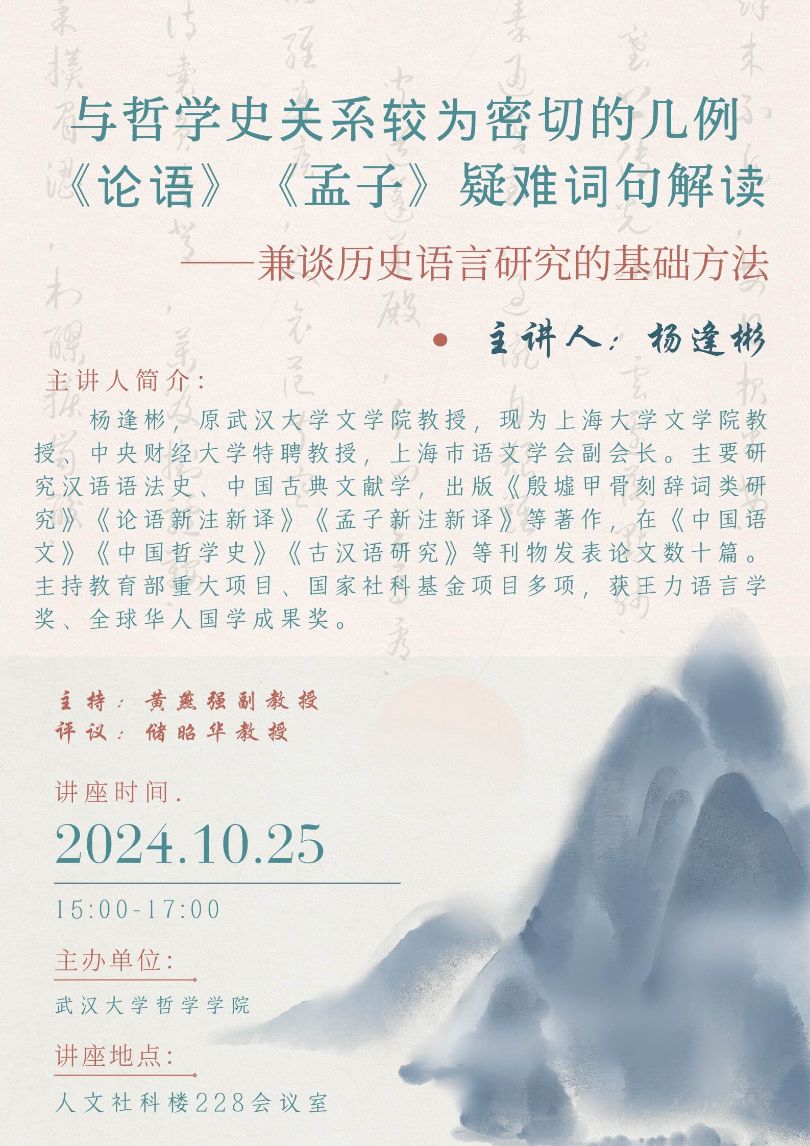 【10月25日】与哲学史关系较为密切的几例《论语》 《孟子》疑难词句解读——兼谈历史语言研究的基础方法