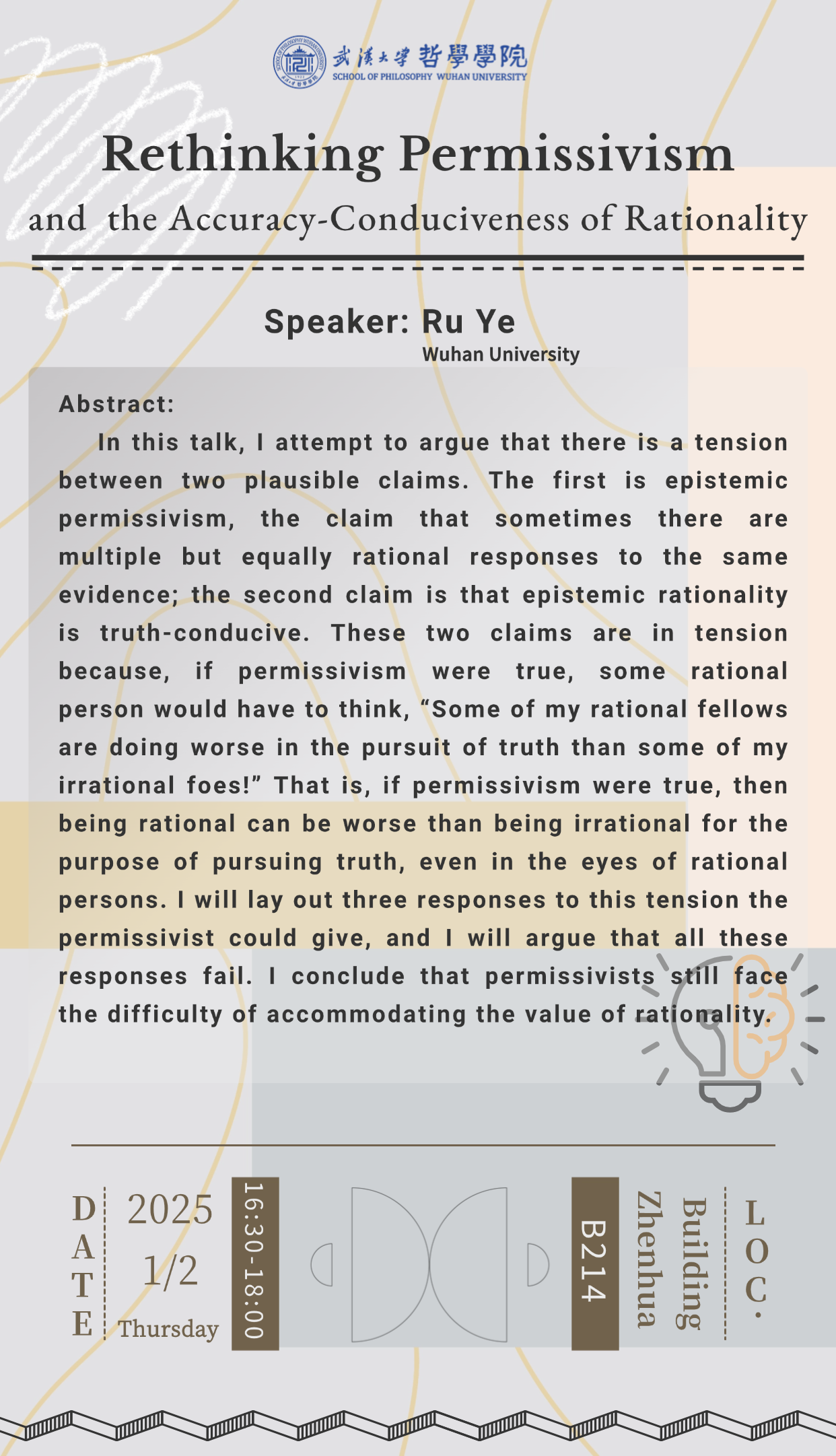 【1月2日】讲座预告 | 叶茹:重新思考宽容主义与理性的准确性和有益性
