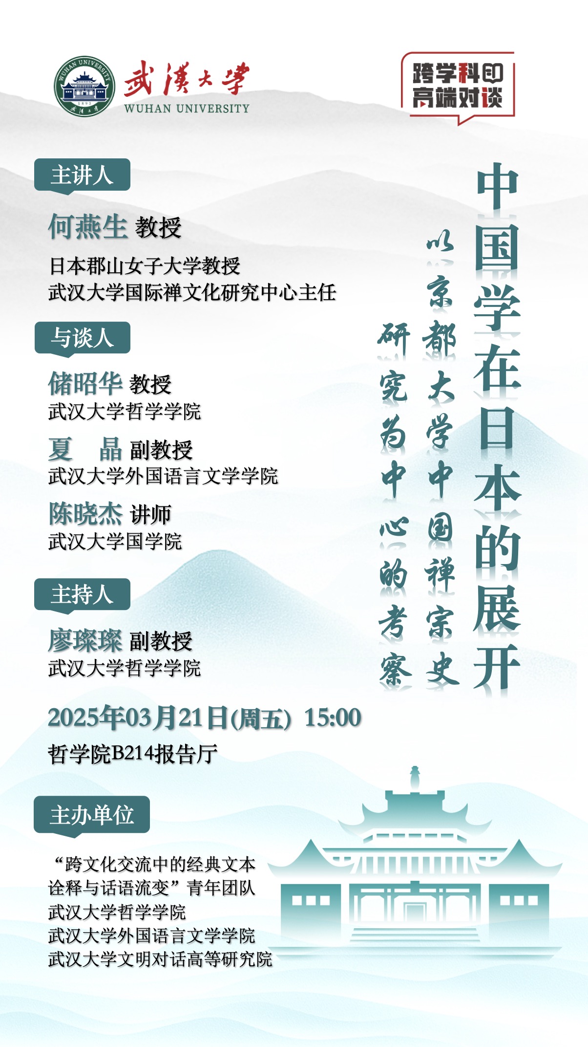 【3月21日】跨学科高端对谈 | 中国学在日本的展开——以京都大学中国禅宗史研究为中心的考察