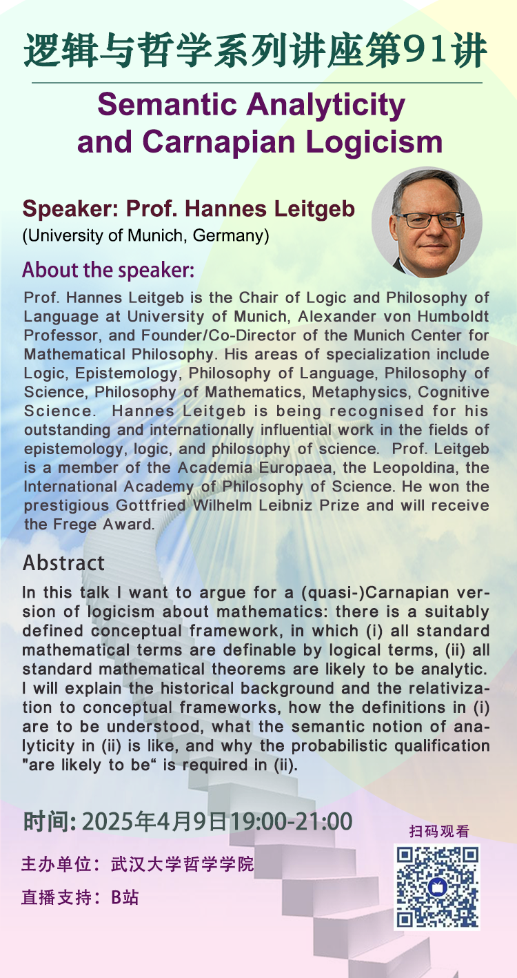 【4月9日】逻辑与哲学系列讲座第91讲| Semantic Analyticity and Carnapian Logicism