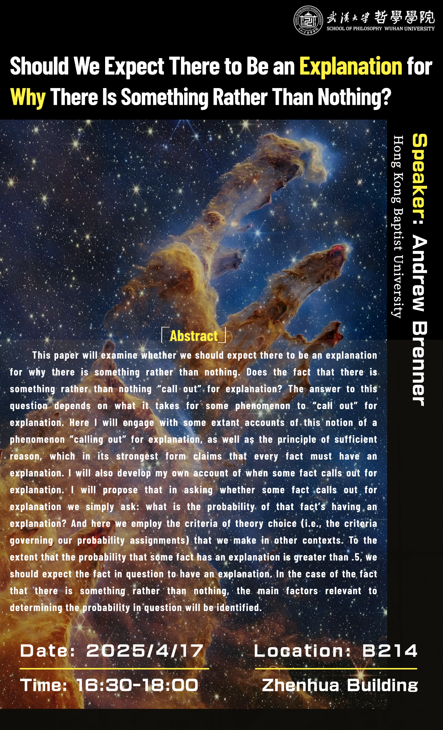 【4月17日】讲座预告 | Should We Expect There to Be an Explanation for Why There ls Something Rather Than Nothing?