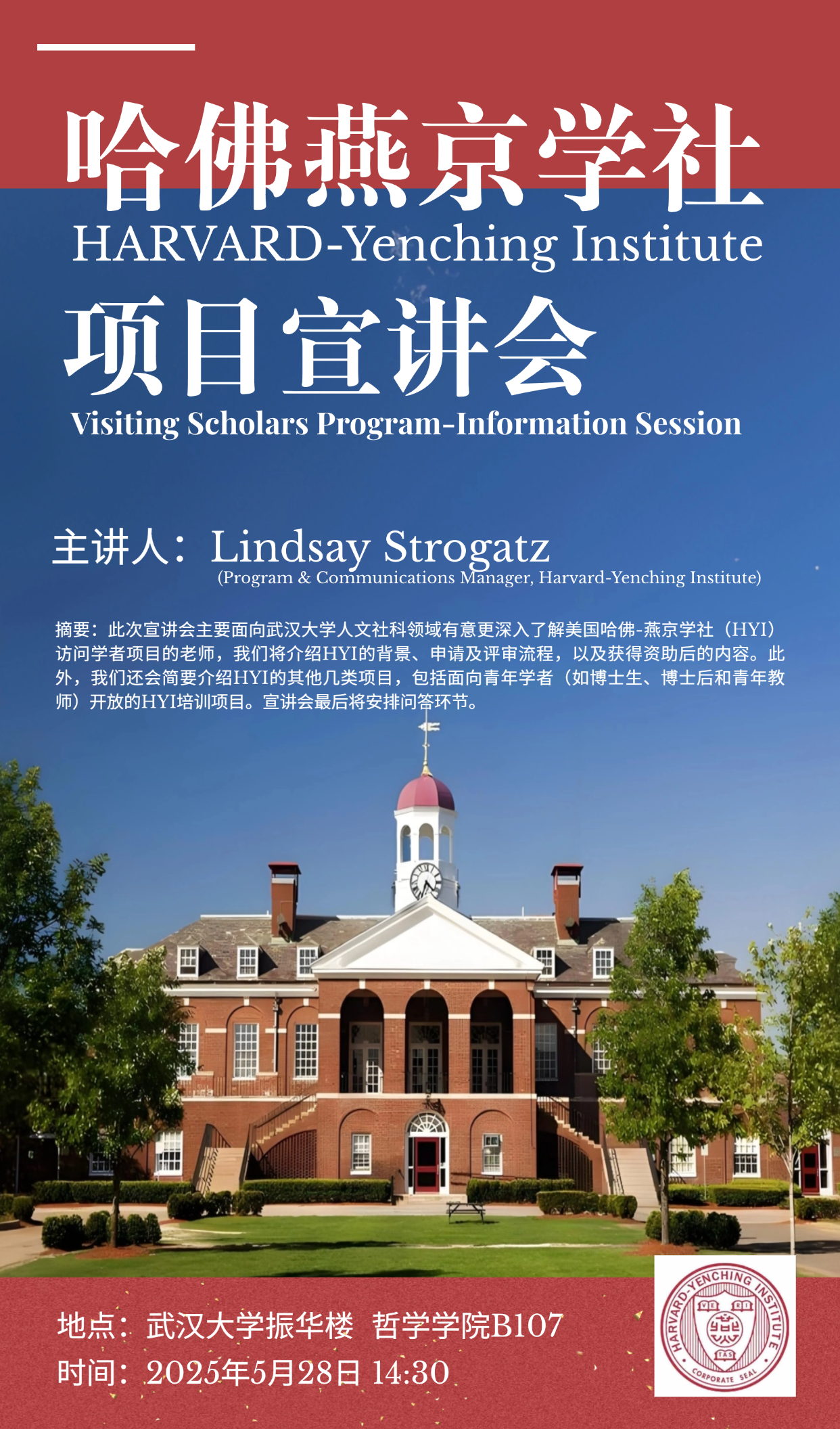 【5月28日】宣讲会 | Lindsay Strogatz : 哈佛燕京学社项目宣讲会