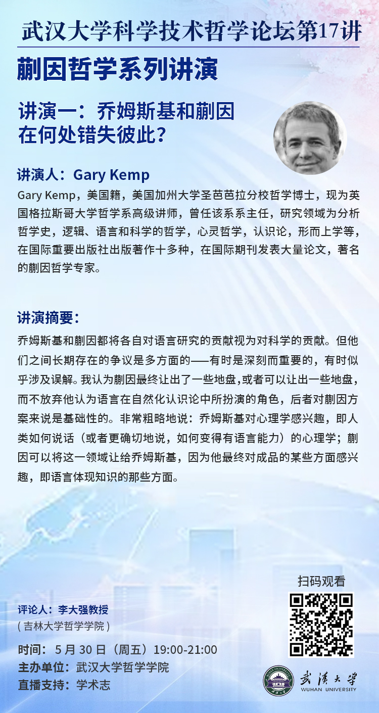 【5月30日】色情导航 科学技术哲学论坛第17讲预告 ▏蒯因哲学系列讲演一:乔姆斯基和蒯因在何处错失彼此?